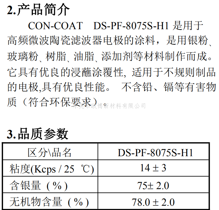 滤波器电极含浸银浆DS-PF-7175FDP-A